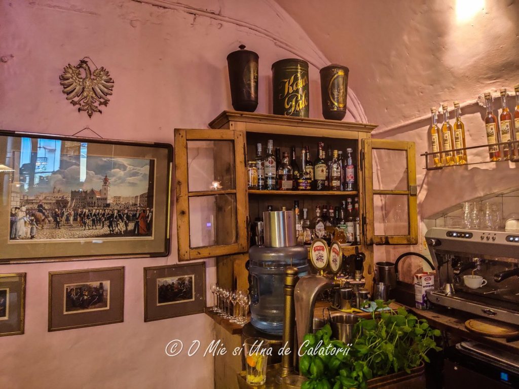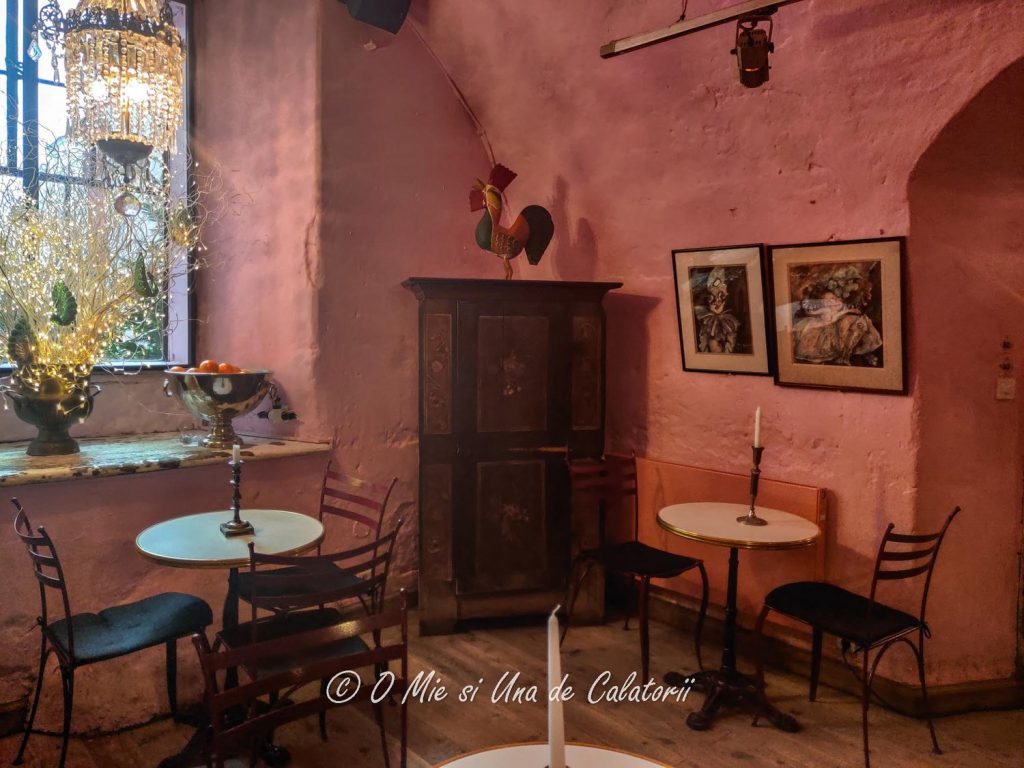 Today, the floor creaks under the round tables on which there are candlesticks with candles that will be lit, and the place of the boudoir perfume has been taken by the bitter smell of freshly ground coffee. The red lanterns have disappeared from the short halls. Only the walls remained pink. Cunning eyes from naive paintings placed in watercolours on the walls watch you carefully: are you sitting down or not? Yes, I say: it can be the most romantic place in Krakow.